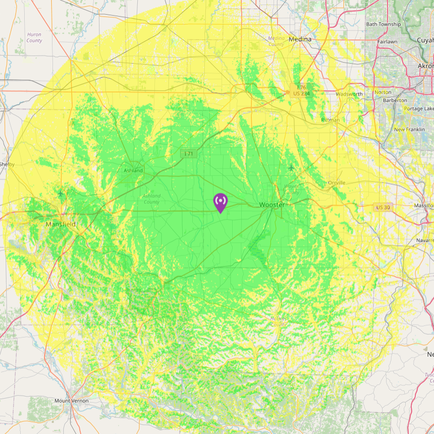 - This gateway is located about 10 miles west of Wooster, OH. The coverage map is a good representation of expected coverage for a home station.