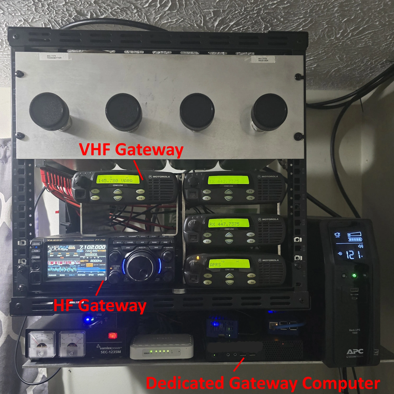 - The gateway consists of a dedicated Yaesu FT710 and shares the same Lenovo M700 tiny pc as the VHF gateway.